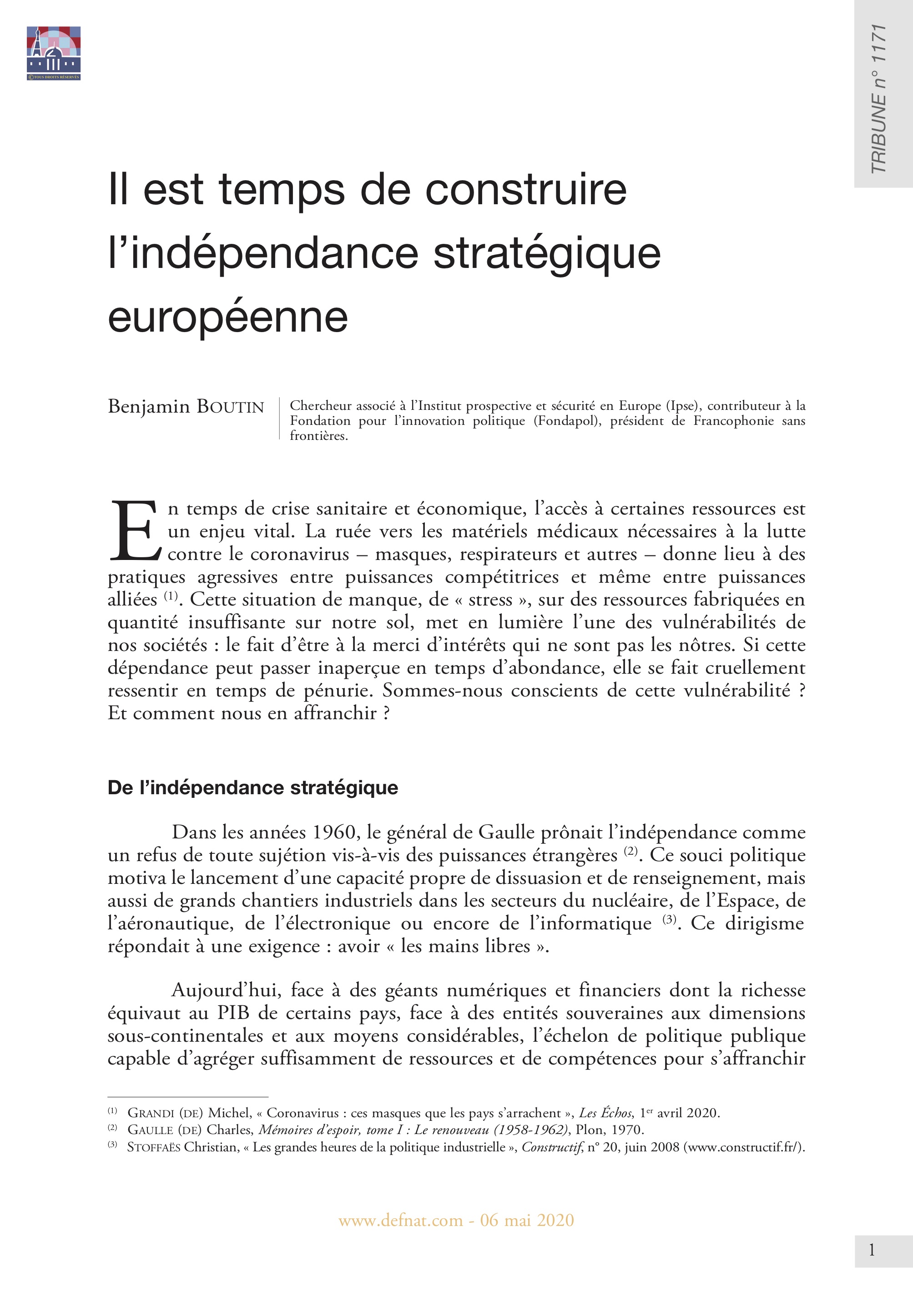 Il est temps de construire l’indépendance stratégique européenne (T 1171)