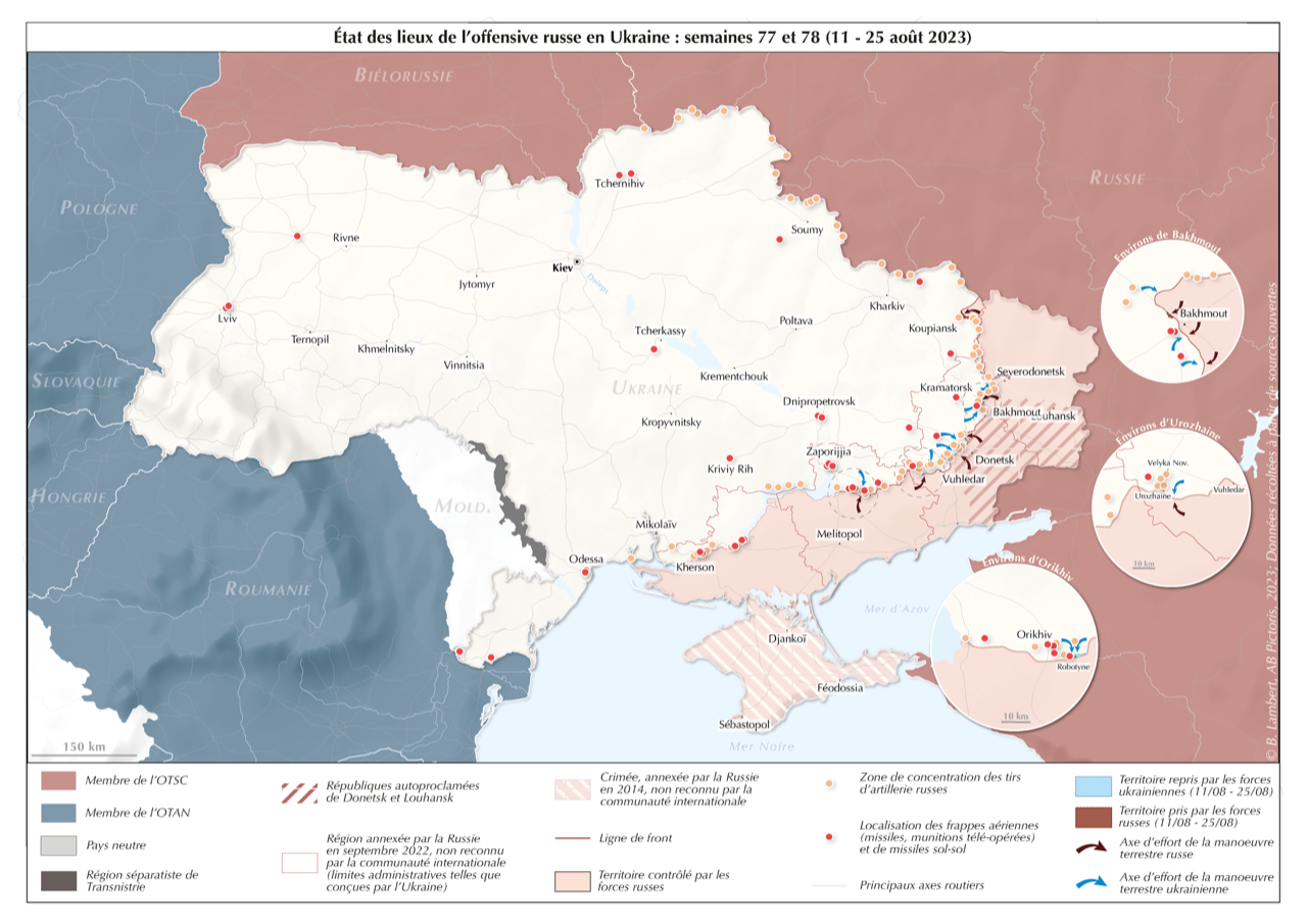 Depuis le 24 février 2022, l’invasion à grande échelle du territoire ukrainien par les forces armées de la Fédération de Russie a été accompagnée d’une offensive d’envergure du dispositif d’influence informationnelle russe. Cette offensive, qui s’inscrit dans le cadre de stratégies de « confrontation informationnelle » lancées par l’État russe dès le début des années 2000, cible tant la population ukrainienne que les auditoires internationaux, notamment français. Son objectif principal est de légitimer « l’opération militaire spéciale » en Ukraine, en la présentant comme une action défensive face à la prétendue agressivité d’un État ukrainien soutenu par « l’Occident collectif ».