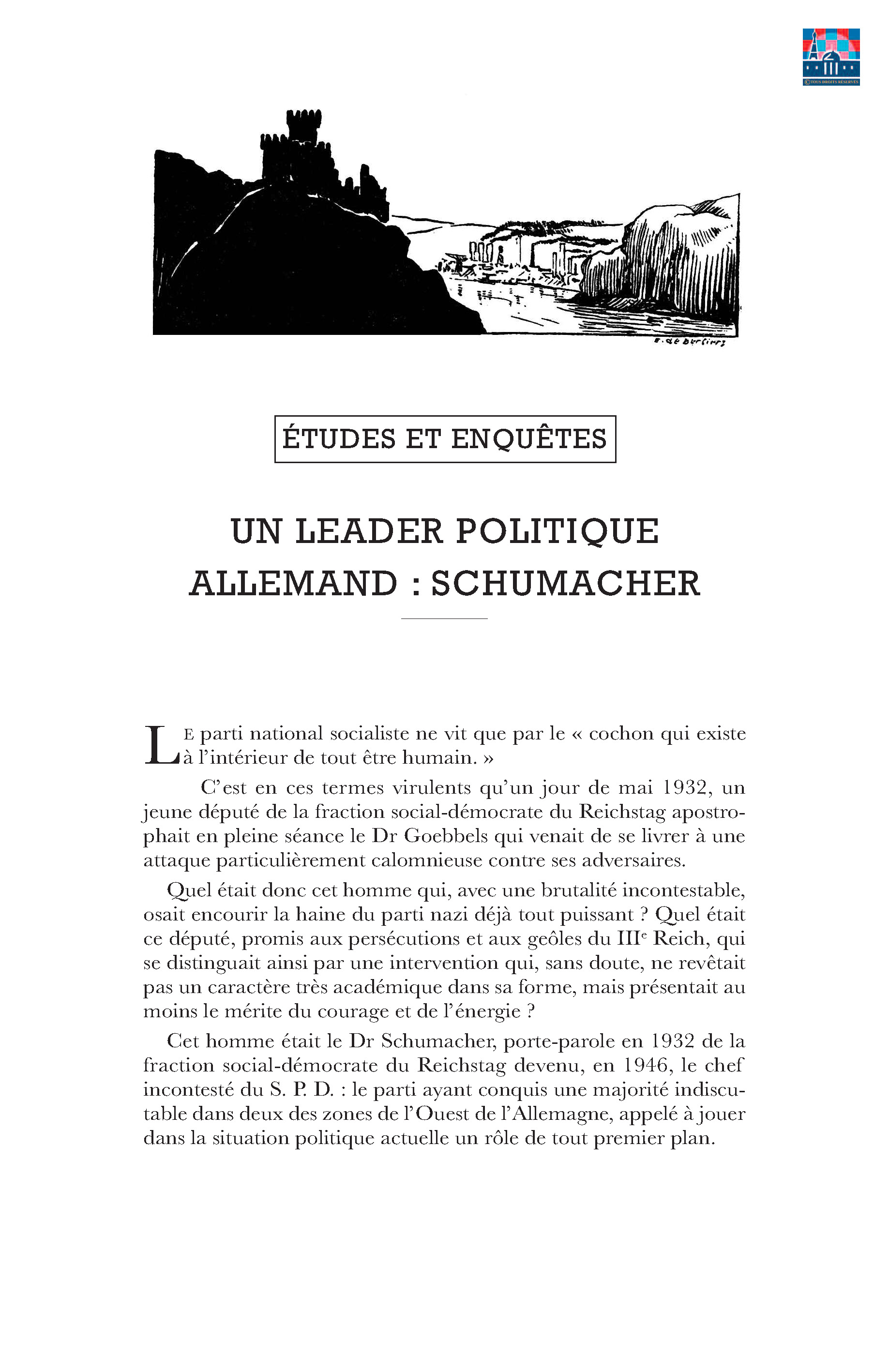 Semaine 42/2015 - Naissance de Kurt Schumacher, principal opposant à Konrad Adenauer le 13 octobre 1895