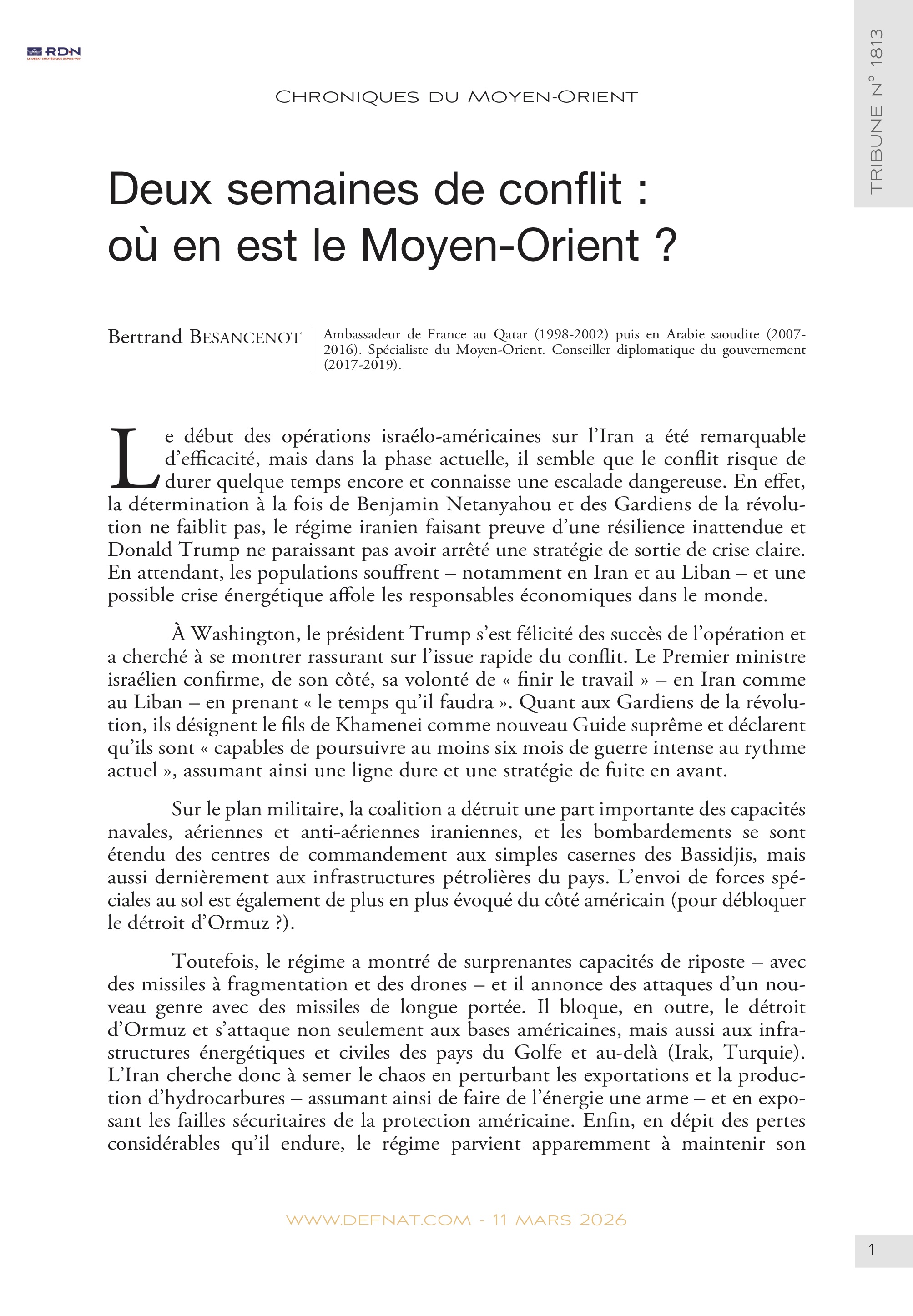 Chroniques du Moyen-Orient – Deux semaines de conflit : où en est le Moyen-Orient ? (T 1813)