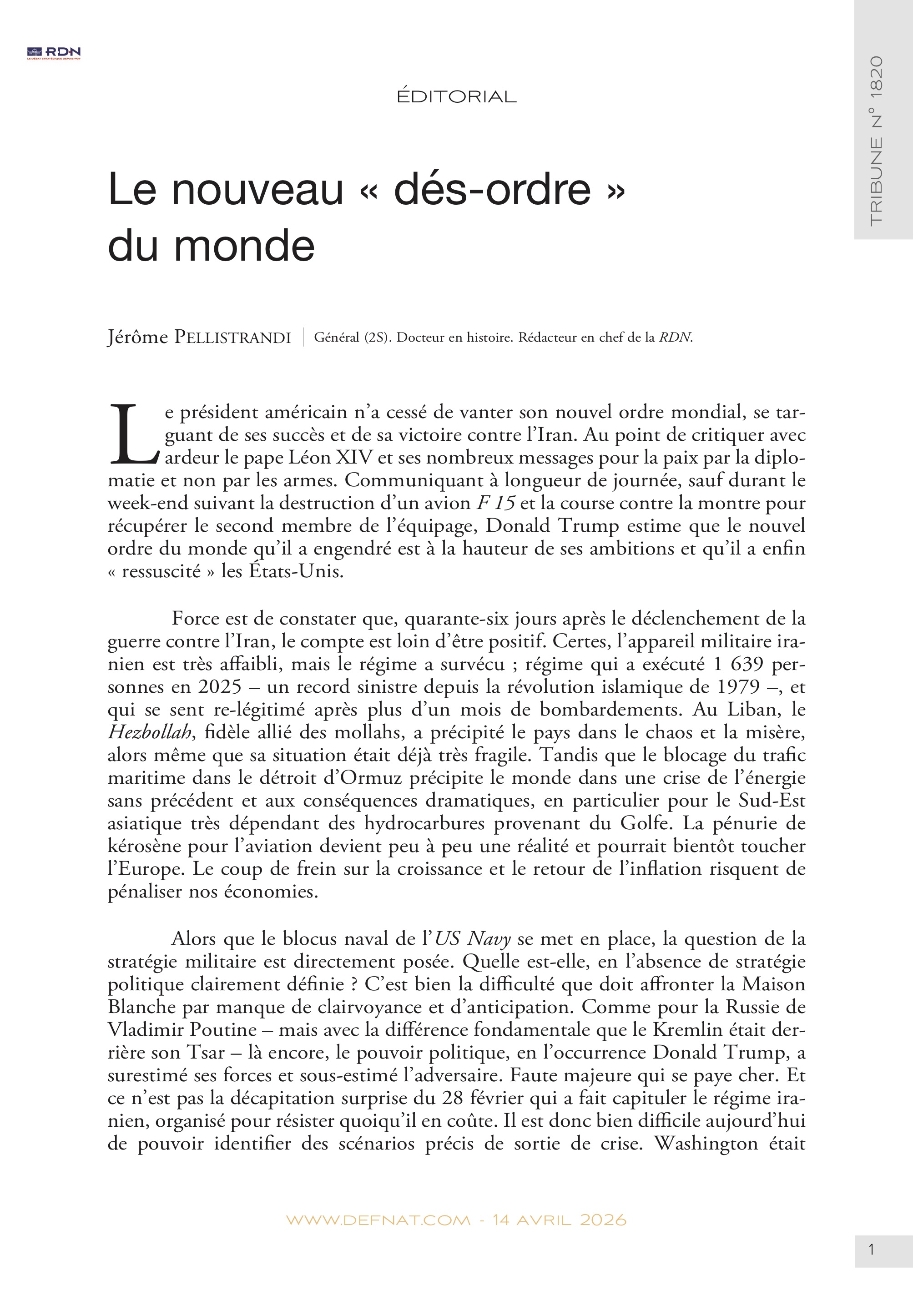 Éditorial – Le nouveau « dés-ordre » du monde (T 1820)
