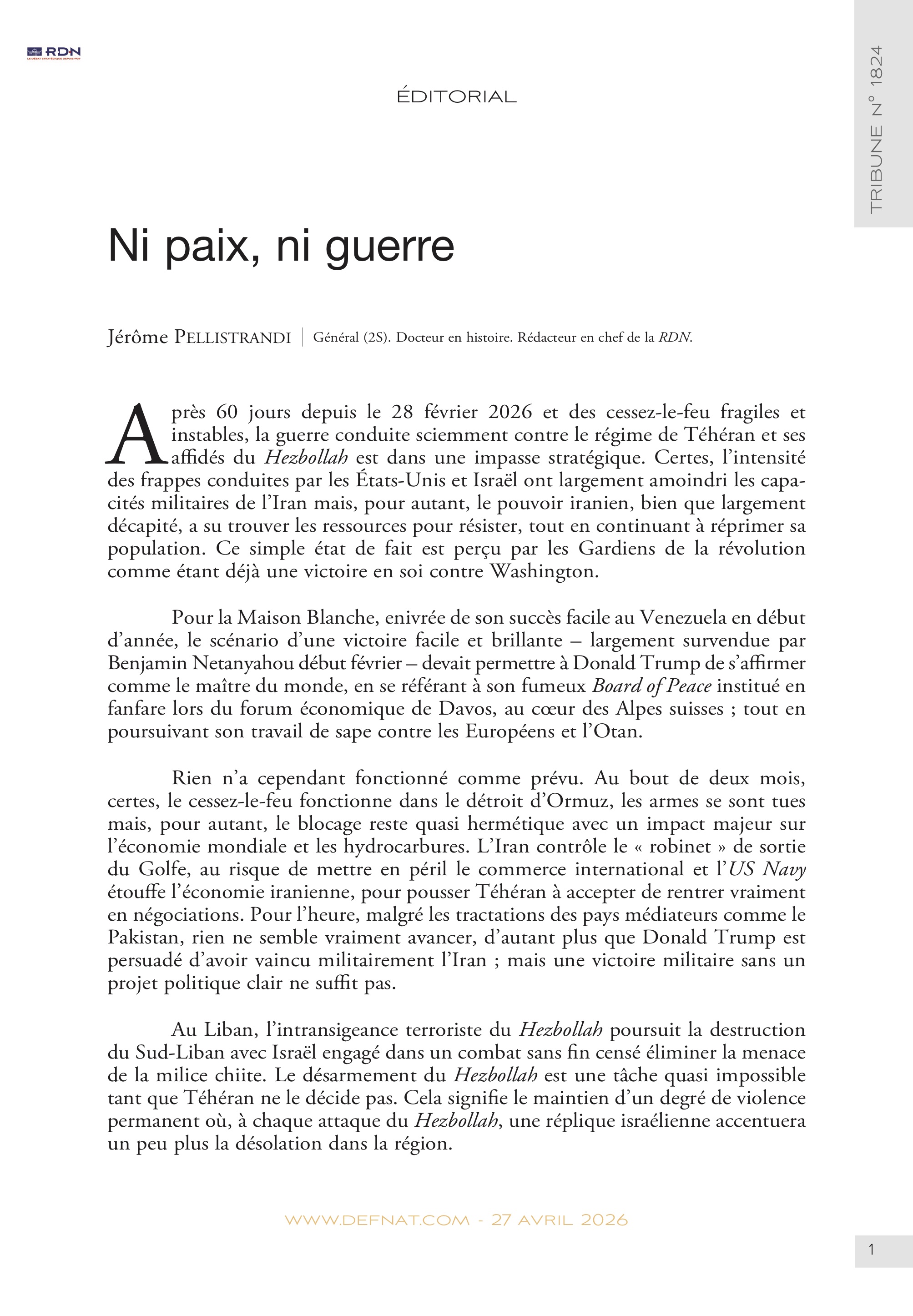 Après 60 jours depuis le 28 février 2026 et des cessez-le-feu fragiles et instables, la guerre conduite sciemment contre le régime de Téhéran et ses affidés du Hezbollah est dans une impasse stratégique. Certes, l’intensité des frappes conduites par les États-Unis et Israël ont largement amoindri les capacités militaires de l’Iran mais, pour autant, le pouvoir iranien, bien que largement décapité, a su trouver les ressources pour résister, tout en continuant à réprimer sa population. Ce simple état de fait est perçu par les Gardiens de la révolution comme étant déjà une victoire en soi contre Washington.