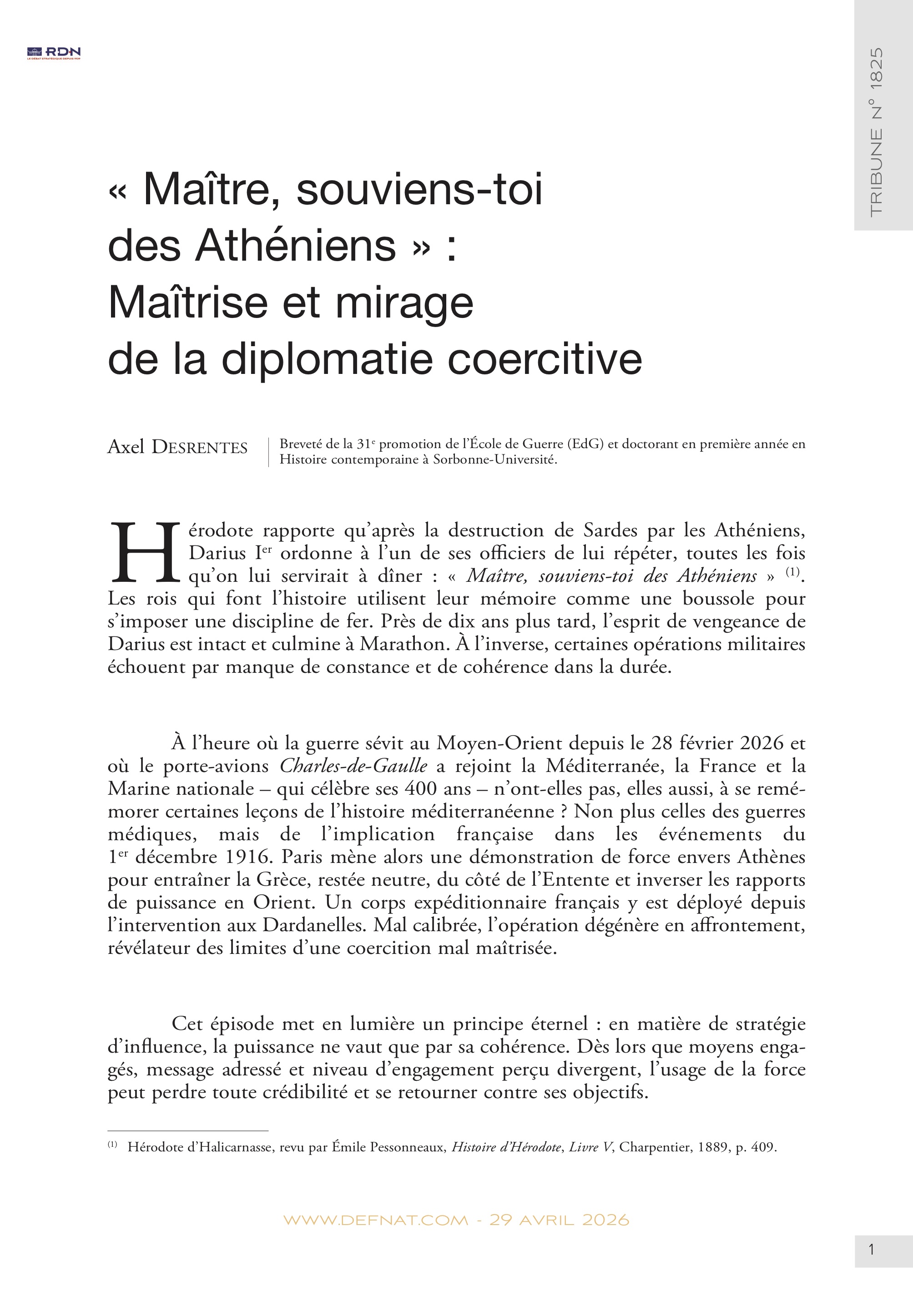 « Maître, souviens-toi des Athéniens » : Maîtrise et mirage de la diplomatie coercitive (T 1825)