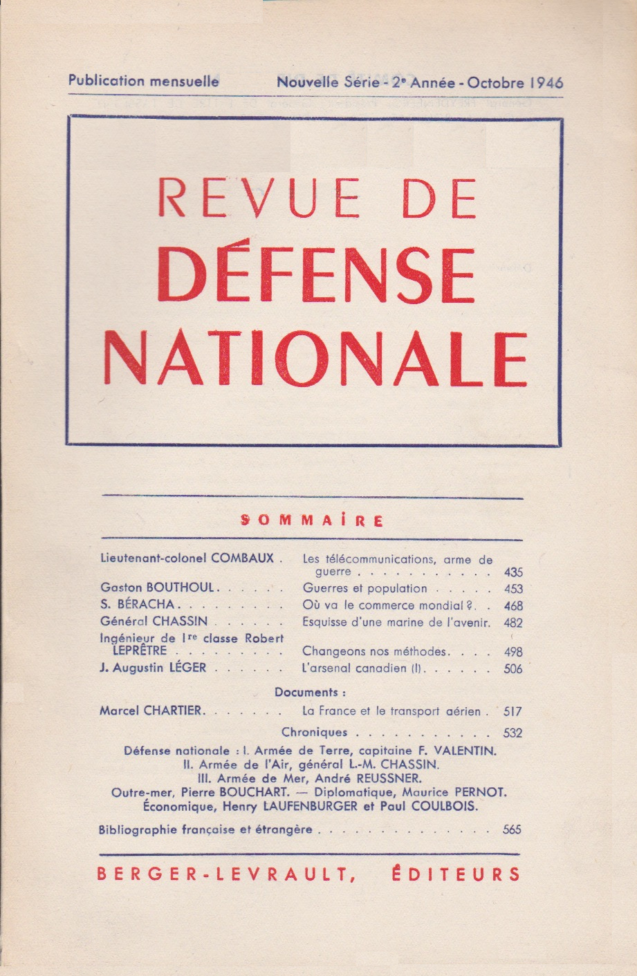 Au sortir de ces cinq années de guerre, on est étonné et même un peu humilié de constater la résignation qui paraît régner en cette matière. Alors qu’après 1918 un grand espoir de paix soulevait l’Humanité, l’opinion générale semble aujourd’hui admettre le caractère inévitable de la guerre et s’attendre à de nouveaux conflits, dont elle se hâte de désigner les protagonistes. M. Gaston Bouthoul attribue ce découragement au fait que nous en avons toujours agi trop présomptueusement vis-à-vis de la guerre. Alors que dans toutes les sciences on sait que la connaissance des phénomènes ne nous est pas offerte avec facilité, mais ne peut être atteinte qu’au terme de recherches patientes, les hommes ont toujours discuté des guerres et de leurs causes comme s’ils en avaient une intuition directe et miraculeusement exacte. Il est temps, dit l’auteur, que nous prenions conscience de cette situation et que, écartant toutes les idées préconçues, nous nous résignions à voir dans les guerres un phénomène social encore inexploré. Lire la suite