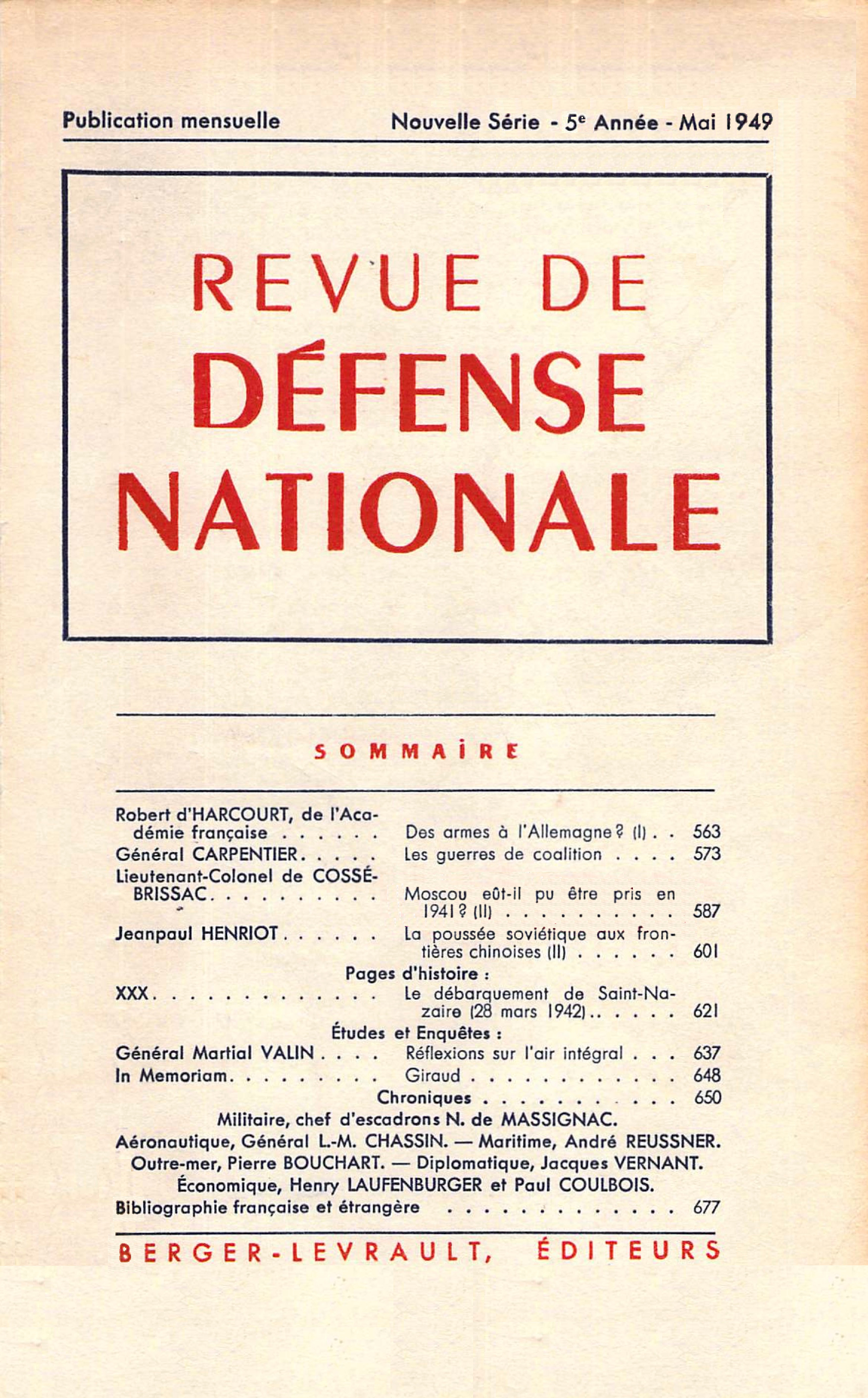 Notre collaborateur René Cercler a eu l’heureuse idée de réunir, en un volume, les articles qu’il a donnés ces dernières années dans diverses revues, notamment dans la Revue Politique et Parlementaire et dans la Revue de Défense nationale. Lire la suite