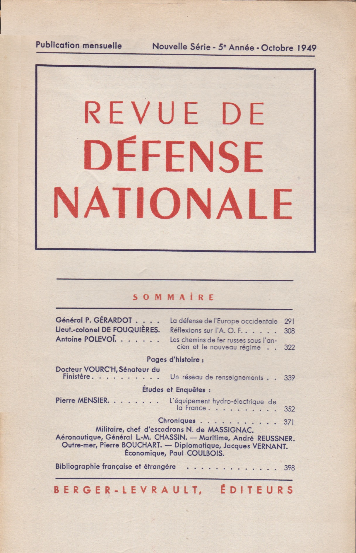 NDLR : Cette étude complète celle publiée sous la même signature dans le numéro de février 1949. Celle-ci, conformément aux vues exprimées par le Président de son Comité consultatif, le général Juin, est une libre tribune où s’affrontent doctrines et idées. Nous espérons que cet article attirera éventuellement objections et réfutations. Lire les premières lignes