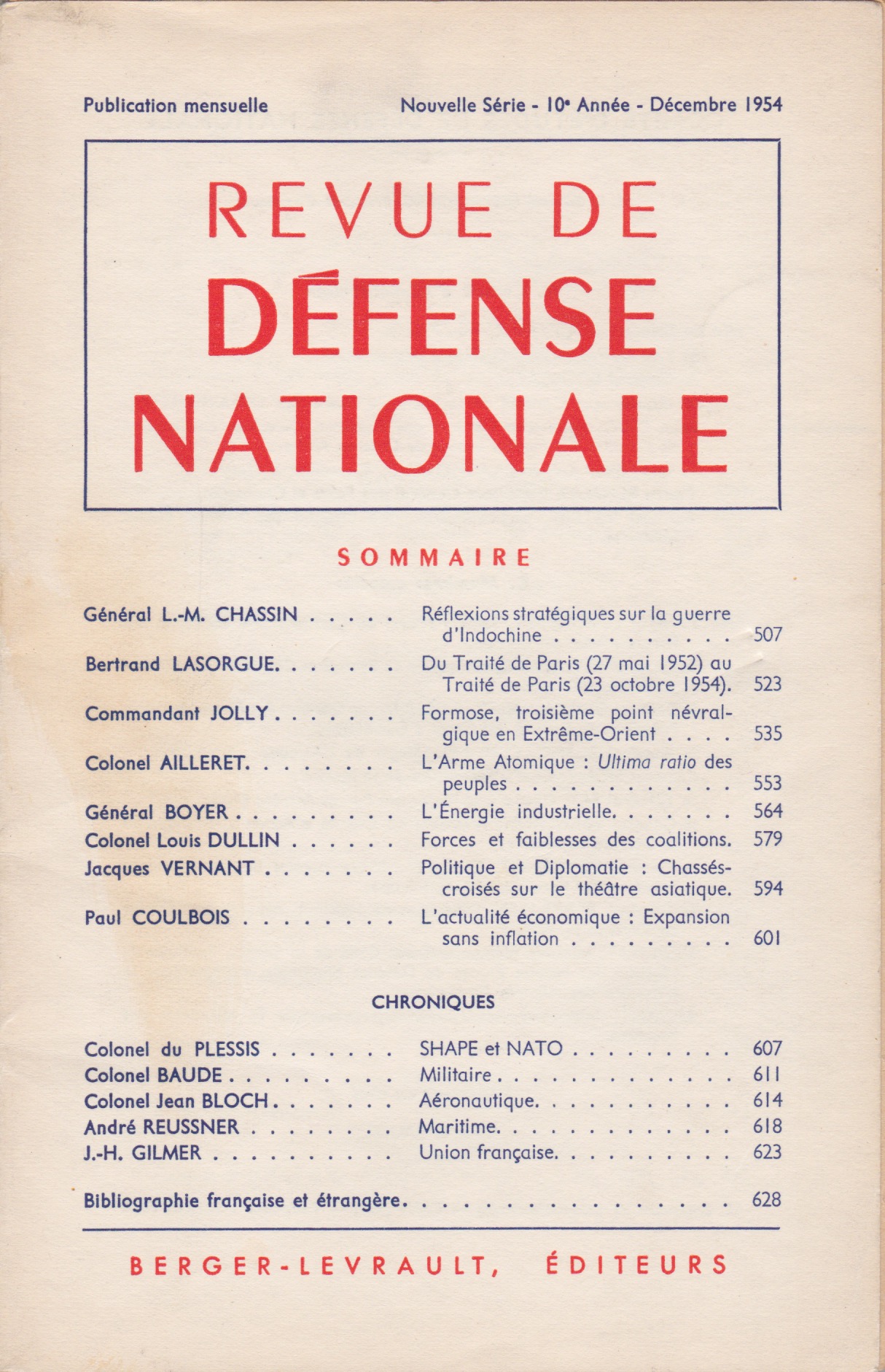 L’armistice de Genève, en mettant fin à une longue guerre qui durait pratiquement depuis août 1945, a établi, pour une durée impossible à fixer, une nouvelle situation stratégique dans le Sud-Est asiatique et dans le Monde. À tout le moins, il s’agit d’une trêve. Et pendant cette trêve, les militaires ont le devoir de réfléchir, de faire leur examen de conscience et de tirer de l’étude du passé des leçons pour l’avenir. Lire les premières lignes