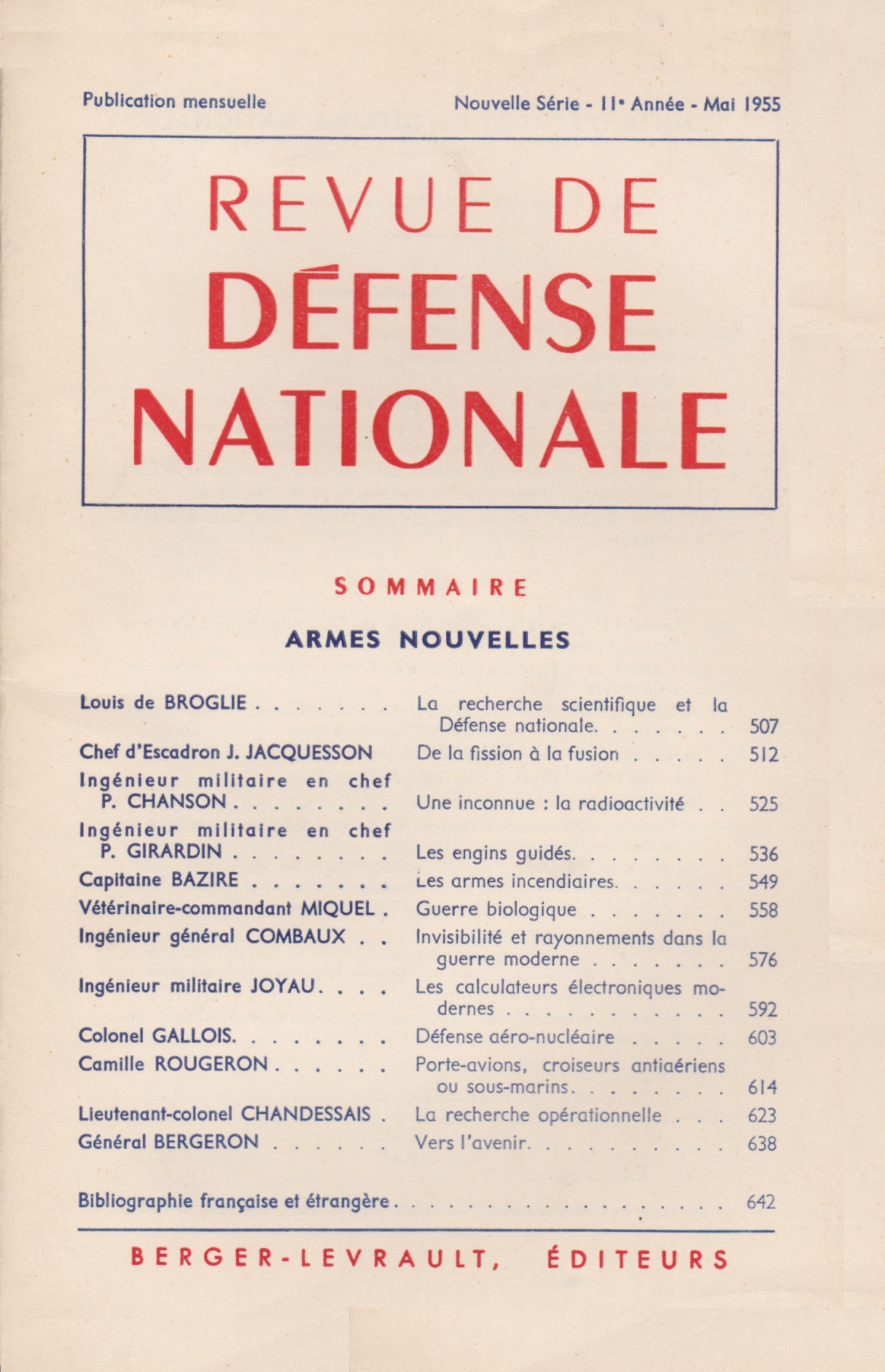 Les mobiles qui ont poussé et qui poussent, les hommes vers la recherche scientifique, c’est-à-dire qui leur font s’efforcer de connaître et d’utiliser les phénomènes de la nature, sont très divers. Il y a la curiosité qu’ils éprouvent devant les énigmes qui nous entourent et la joie d’en trouver la solution, il y a le désir de se servir de la connaissance des lois naturelles pour améliorer les conditions de leur vie quotidienne, pour la rendre plus aisée, plus agréable ou moins périlleuse. Mais, de tout temps, il y a eu aussi le souci qu’a tout homme de se défendre contre les dangers qui le menacent, contre les attaques dont il peut être l’objet, notamment de la part de ses congénères. Il faut bien dire que souvent le perfectionnement des armes a eu pour but de faciliter l’attaque plutôt que la défense, car les sentiments agressifs sont malheureusement assez spontanés dans le cœur humain. Si, du point de vue moral, le désir de se défendre apparaît comme légitime et celui d’attaquer comme condamnable, on ne peut cependant séparer l’attaque de la défense parce qu’elles utilisent presque toujours les mêmes armes et que le meilleur moyen de se défendre est souvent de contre-attaquer. Lire les premières lignes