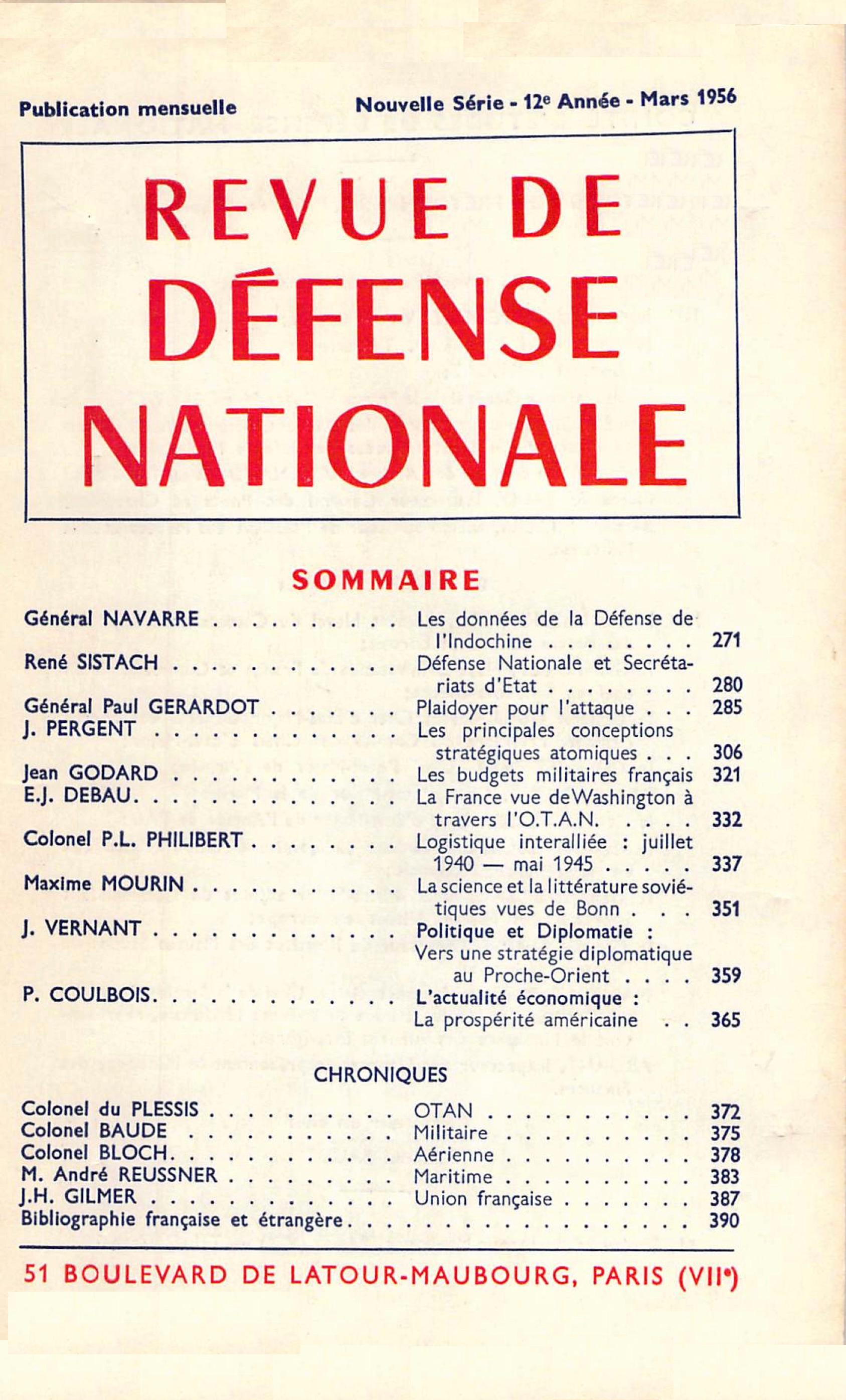 Peut-on défendre la France contre des bombes atomiques ou thermonucléaires avec les moyens ou les procédés actuels, même améliorés ? Ou devons-nous, au contraire, face à la double révolution de la découverte de la bombe thermonucléaire et de la mise au point des engins téléguidés, réviser complètement notre système de défense aérienne ? Après la supériorité tactique de la défense aérienne, l’évolution technique nous conduit-elle à la supériorité sans conteste de l’attaque ? Dans ce cas quelles en seraient les conséquences sur la défense de notre Pays, qui, comme on le sait, doit se préparer à deux guerres essentiellement différentes : d’une part la défense de l’Europe, de l’autre la police de l’Union Française ? Dès lors comment peut-on envisager la période transitoire qui s’ouvre et qui doit nous amener d’ici quelques années à la situation que l’évolution de la technique moderne aura commandée ? Lire les premières lignes