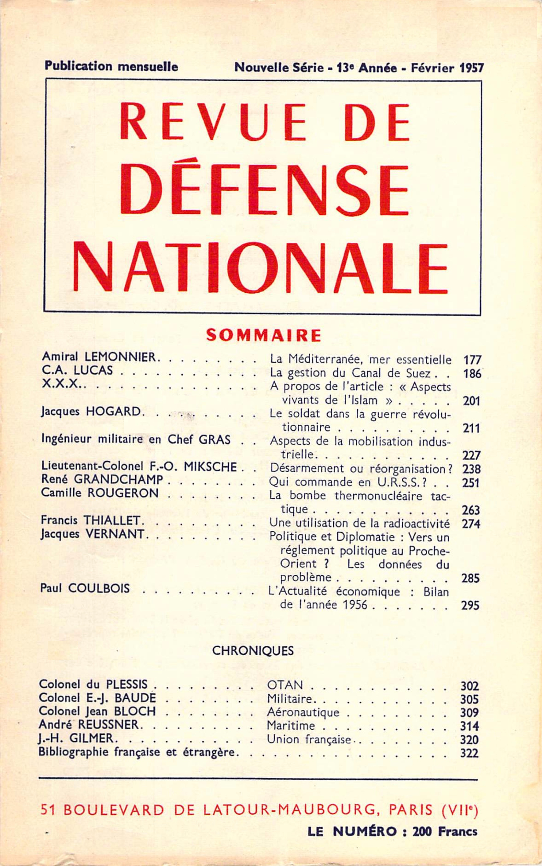 Dans son numéro de novembre dernier la Revue de Défense Nationale a publié un article intitulé « Aspects vivants de l’Islam » dont l’inspiration et les arguments ont provoqué de vives réactions, aussi nous a-t-il paru nécessaire de revenir sur les idées exprimées par l’auteur. Lire les premières lignes