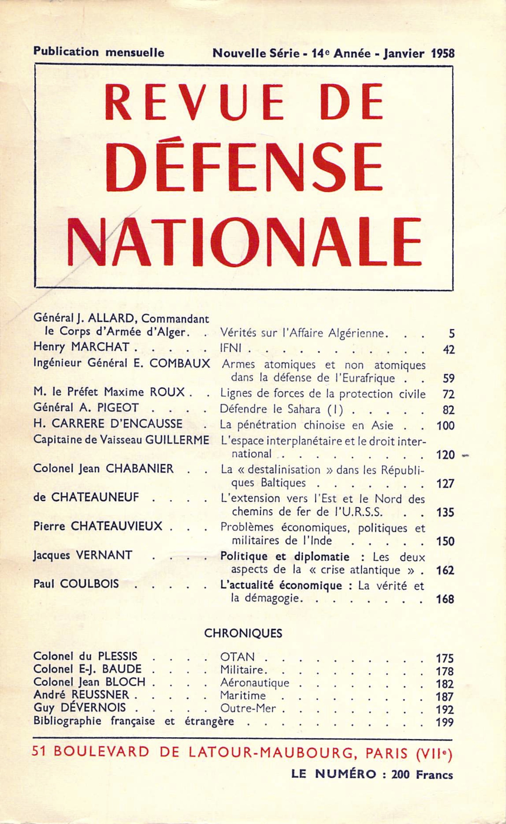 Cet texte est une conférence donnée au SHAPE, le 15 novembre 1957, par l'auteur, commandant le corps d’armée d’Alger qui, à cette occasion, tint d’abord à situer le problème algérien dans le cadre mondial, avant d’exposer les origines de la rébellion, la lutte menée par l’armée depuis 1954 et les résultats obtenus à ce jour. Ce témoignage d’un acteur placé à l’un des échelons les plus élevés du commandement militaire n’était destiné, ni à la presse, ni au grand public ; de ce fait, il prend une valeur exceptionnelle. La RDN remercie l'auteur de lui avoir confié le soin de faire connaître la situation exacte en Algérie, trop souvent déformée par intérêt, par passion ou simplement par manque d’information. Lire les premières lignes