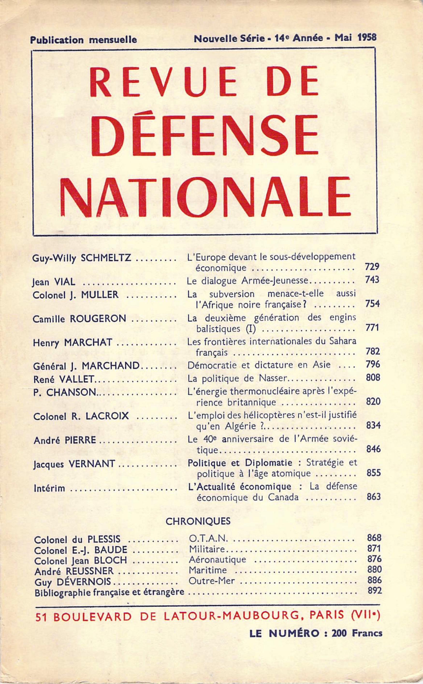 Le mois de mars 1958 a été marqué par le vote au Parlement des crédits du département de l’Air, par la démission de l’ingénieur général Meyer, Directeur technique et industriel de l’Aéronautique (DTAI), et par la permutation du général Bailly avec le général Gelée comme Chef d’état-major général de l’Armée de l’air. Lire les premières lignes
