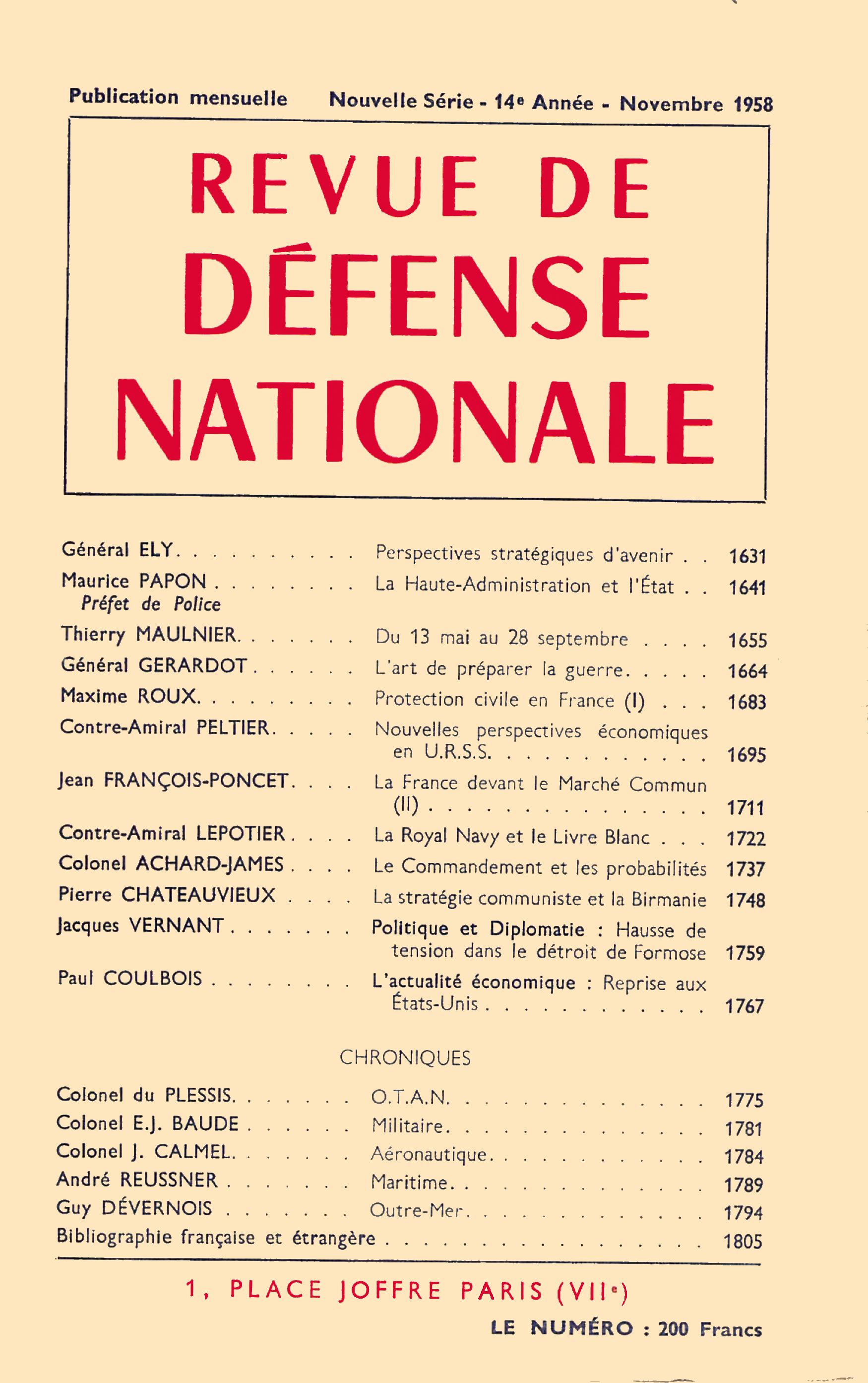 Le colonel Gabriel Bonnet, ancien professeur au Centre de préparation à l’École supérieure de Guerre, est l’un de nos meilleurs écrivains militaires. Après ses nombreux ouvrages notamment sur les campagnes contemporaines, ses deux derniers ouvrages sur « la Culture générale de l’Officier » lui ont valu de précieux encouragements des plus hautes personnalités : « C’est là, mon cher Bonnet, lui écrivait le général de Gaulle le 9 février 1956, un sujet qui m’a, depuis toujours, remué l’esprit et l’âme… Aujourd’hui, le terrain où vous semez est, je le sais, plus ingrat que naguère. Mais il faut, tout de même, semer. Qui sait ?… » Lire la suite