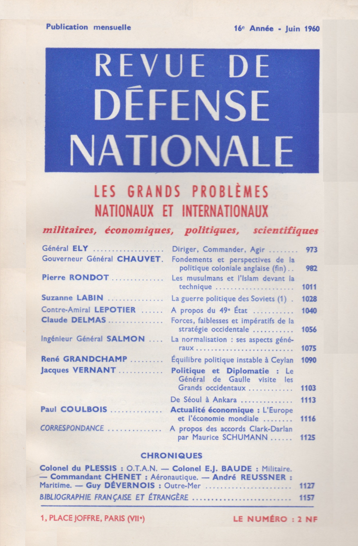 M. Maurice Schumann vient d’adresser au Président du Comité, Directeur de la Revue de Défense Nationale, la lettre suivante rectifiant une affirmation parue dans son article : « De la continuité du Gaullisme » (février 1960). Nous remercions vivement le Président Schumann de cette mise au point dont l’importance et l’intérêt pour l’histoire n’échapperont à aucun de nos lecteurs. Lire la suite