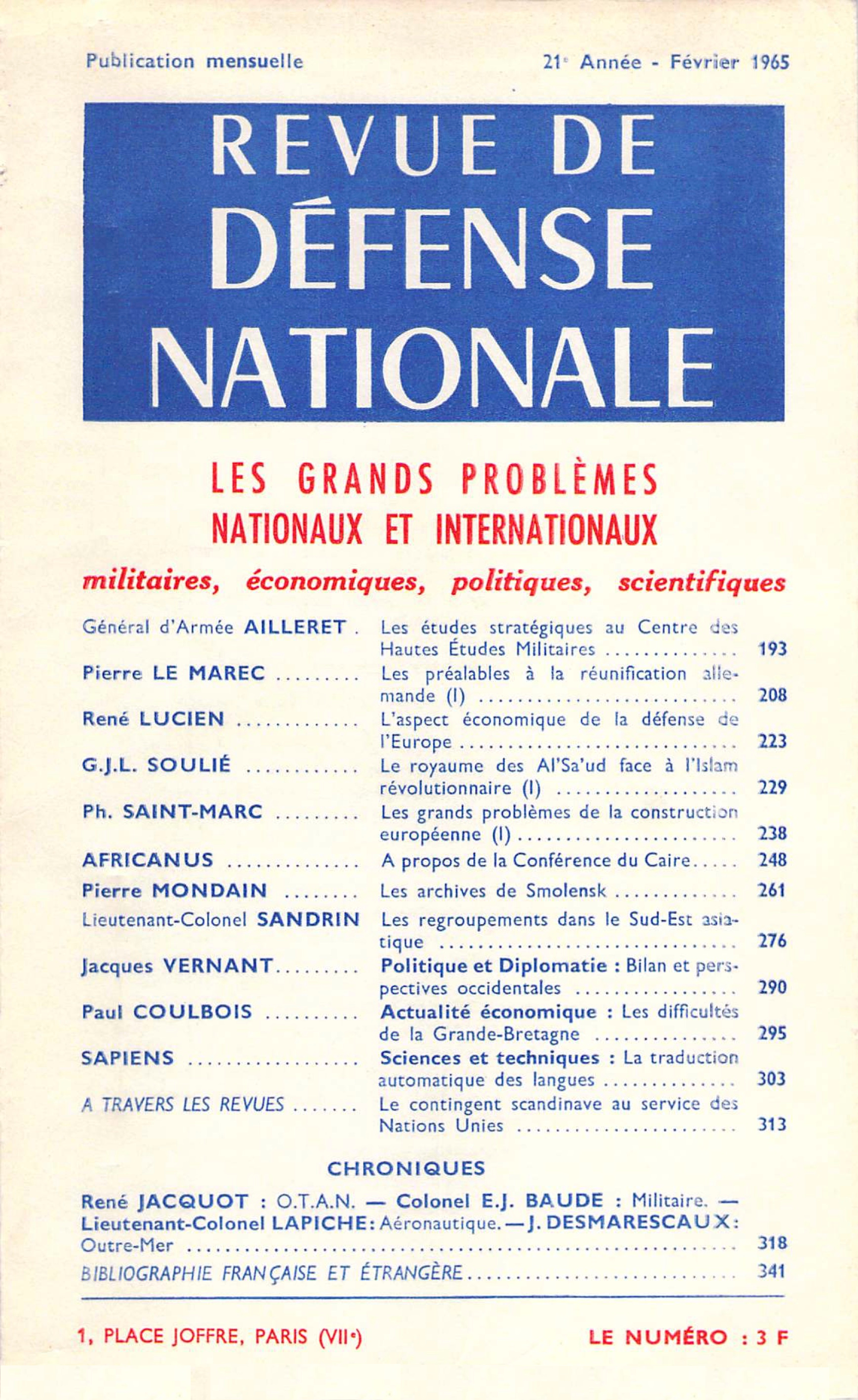 Conférence inaugurale de la 14e session du Centre des hautes études militaires (Chem), prononcée le 4 novembre 1964. Lire la suite
