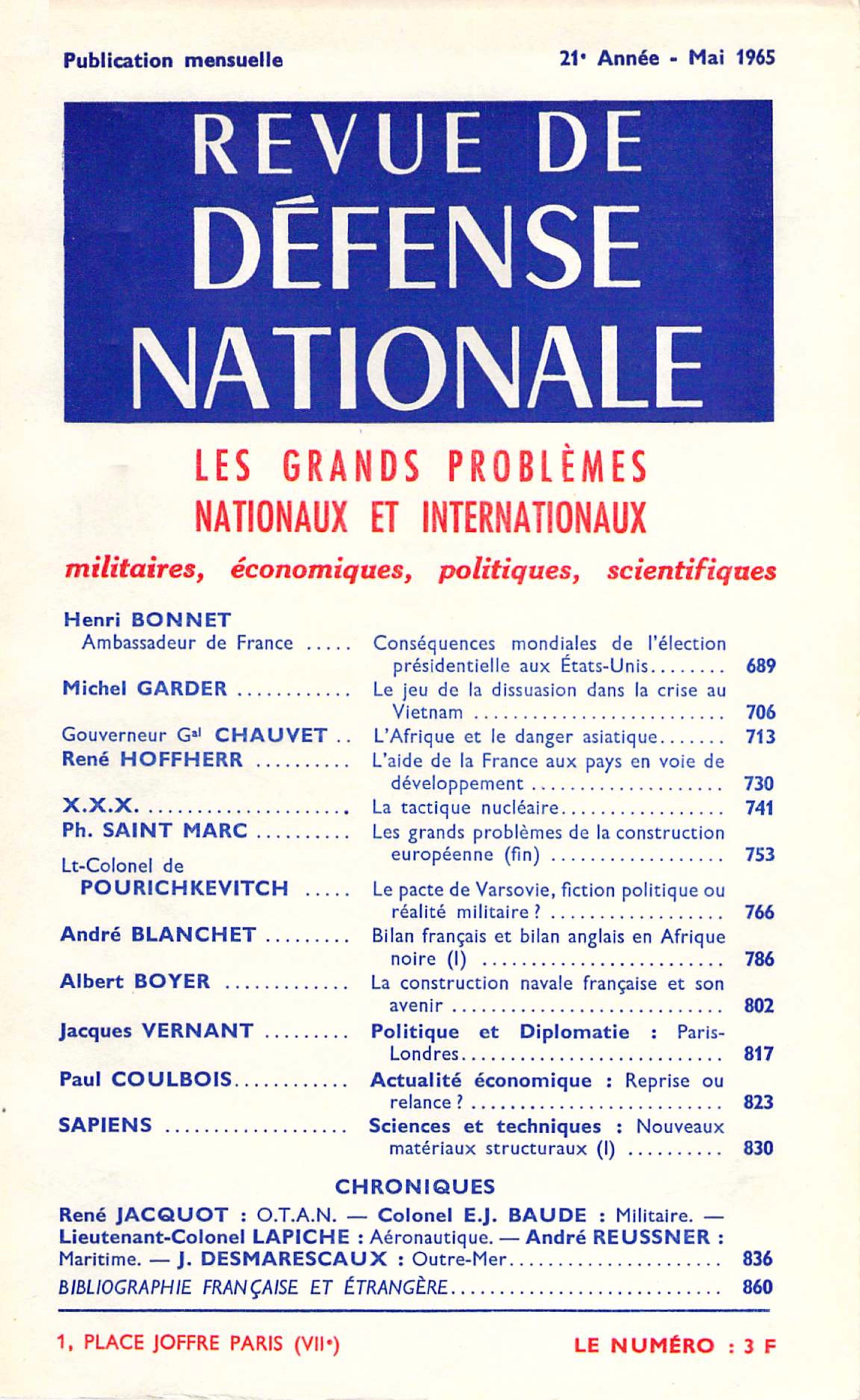 Conférence prononcée le 28 janvier 1965 à l'Intitut des hautes études de défense nationale (IHEDN). Lire les premières lignes