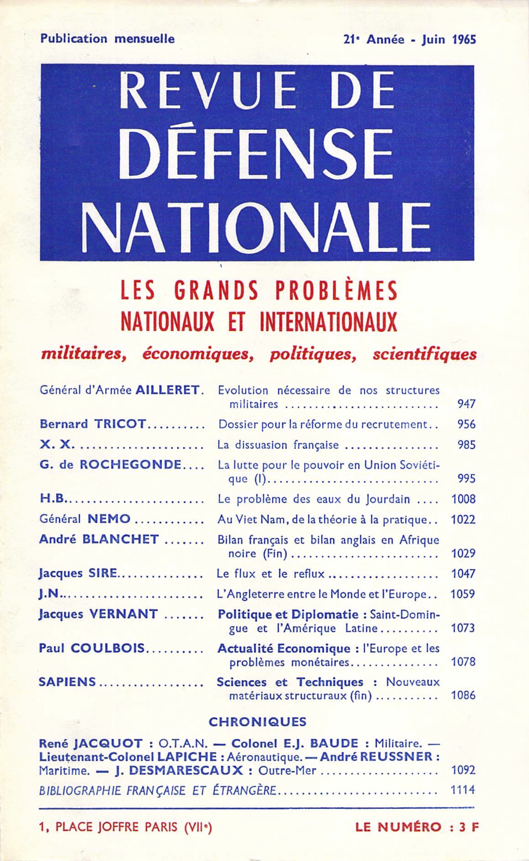 Dans notre dernière chronique, nous évoquions quelques-uns des problèmes posés par l’existence d’un « champ géographique » de l’Otan, et par le développement, hors de celui-ci, de situations qui, mettant en question la paix du monde, concernent directement les Occidentaux. Ces problèmes ne sont pas nouveaux : les crises du Moyen-Orient, le drame congolais, la tension américano-cubaine, etc. avaient, au cours des années récentes, mis les membres de l’Alliance atlantique devant la nécessité d’harmoniser et de coordonner leurs politiques nationales hors de la zone à l’intérieur de laquelle ils ont pris des engagements militaires d’assistance mutuelle pour le cas où l’un d’eux y serait victime d’une agression. L’affaire de Chypre, outre qu’elle a dressé l’un contre l’autre deux des membres de l’Alliance, fait peser une hypothèque sur la sécurité en Méditerranée, mais l’Otan ne peut s’en soucier que très indirectement, puisque la République de Chypre ne fait point partie des « Quinze ». L’aggravation de la situation au Vietnam, non seulement affecte les conditions dans lesquelles se présentent les relations entre l’Est et l’Ouest, mais elle met en lumière de sérieuses divergences de vues entre les États-Unis et la France, divergences qui se sont également exprimées à propos de l’intervention américaine à Saint-Domingue. Aussi bien certains des principaux problèmes de l’Otan, à l’heure où s’ouvrait à Londres la session ministérielle de printemps du Conseil Atlantique, s’avèrent-ils conditionnés par l’évolution de la situation hors du « champ géographique » de l’Otan. Lire les premières lignes