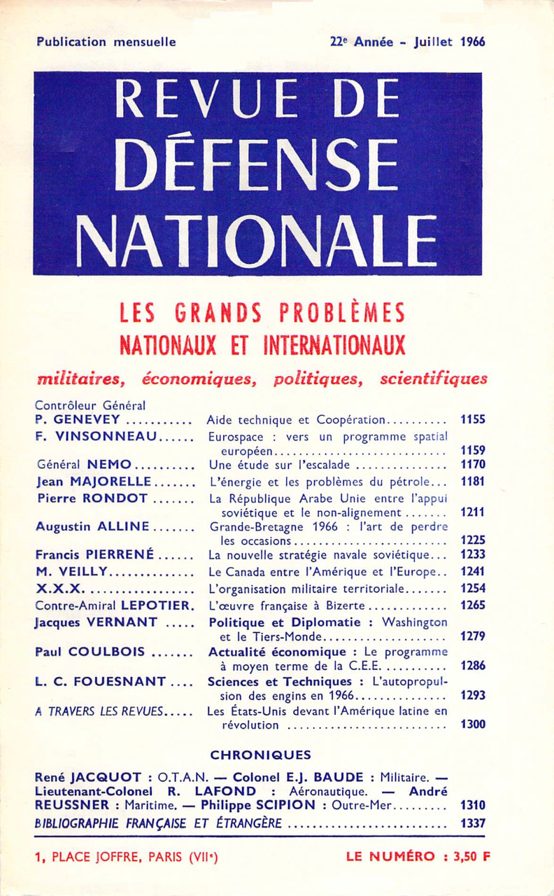 Au cours de l’année 1966, notre organisation territoriale, qui jusqu’ici ne figurait pas parmi les principales préoccupations d’ordre militaire, subira une réforme importante. Ce domaine étant mal connu, il est apparu nécessaire d’exposer l’évolution de cette organisation afin de mieux saisir le sens des mesures qui viennent d’être décidées. Lire les premières lignes