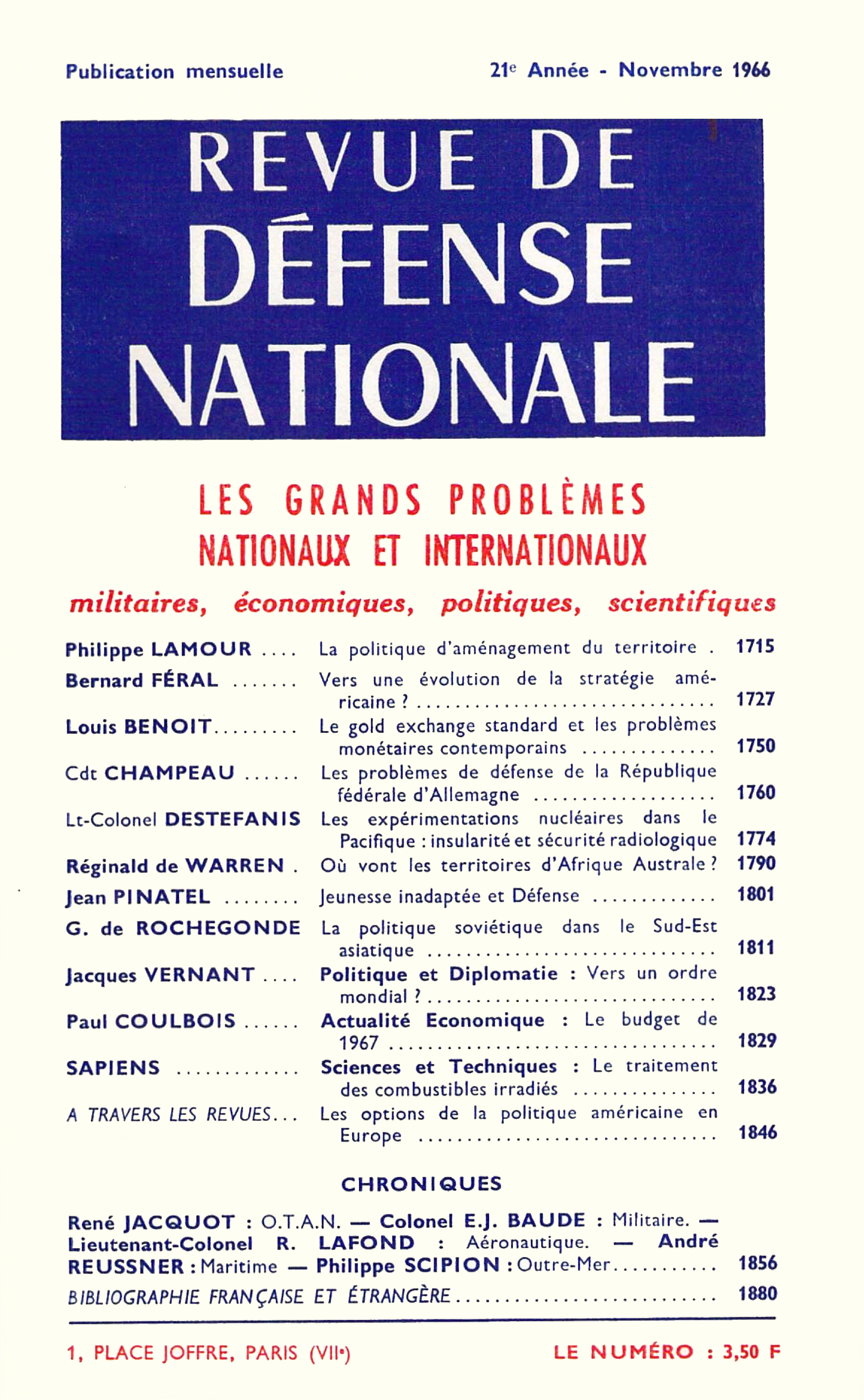 Depuis de longs mois déjà, il est question d’un allégement des forces américaines en Europe. Déclarations officieuses ou officielles, commentaires de presse infirment ou confirment avec autant d’assurance que de conviction cette nouvelle.La crise intérieure de l’OTAN n’est pas la seule raison qui justifie ces rumeurs ; d’autres raisons sont apparues récemment et apportent de nouveaux fondements non seulement à un allégement des forces américaines en Europe mais aussi à une véritable évolution de la stratégie américaine dans les deux principales parties du monde : en Europe et en Asie. Lire les premières lignes
