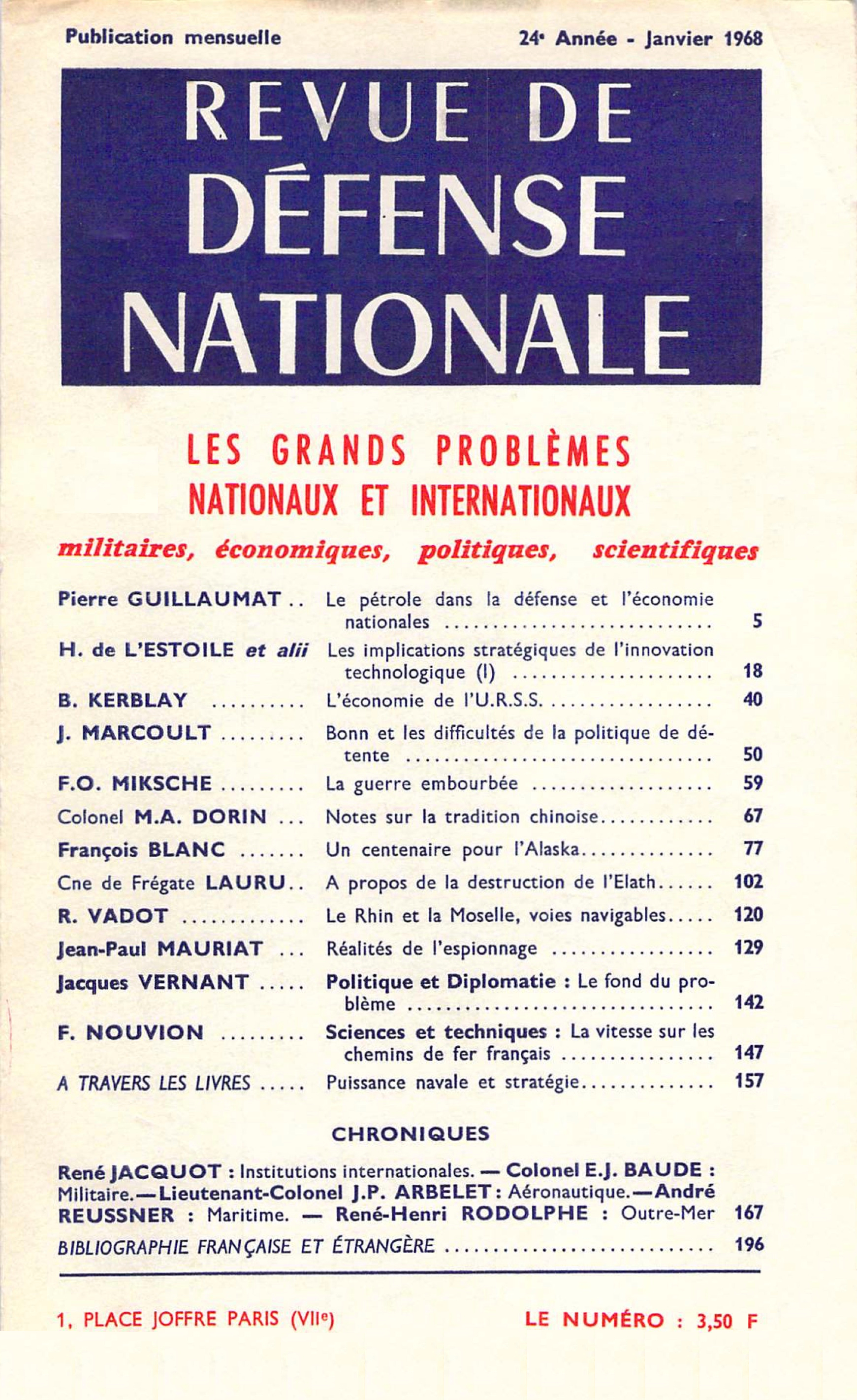 Tandis que les pays d’Europe occidentale se mettent à l’heure de la coexistence pacifique, on voit dans différentes parties du monde des forces nouvelles en train de combler les vides nés de la décolonisation. Le combat pour un nouveau partage des zones d’influence et des richesses mondiales est déclenché ; en témoignent à la fois la crise du Proche-Orient, la pénétration dans le bassin méditerranéen, si important du point de vue stratégique, d’une Russie jusqu’alors confinée derrière les Détroits, et plus encore la guerre du Vietnam. Le plus souvent fomentés de l’extérieur, de tels conflits se développent peu à peu de telle manière qu’ils deviennent en fait des duels indirects entre les Super-Grands. Tout particulièrement, la guerre du Vietnam, dont l’issue décidera sans doute l’avenir de tout le Sud-Est asiatique, offre un exemple très instructif pour l’analyse des affrontements politico-militaires dans les années qui viennent. Lire les premières lignes