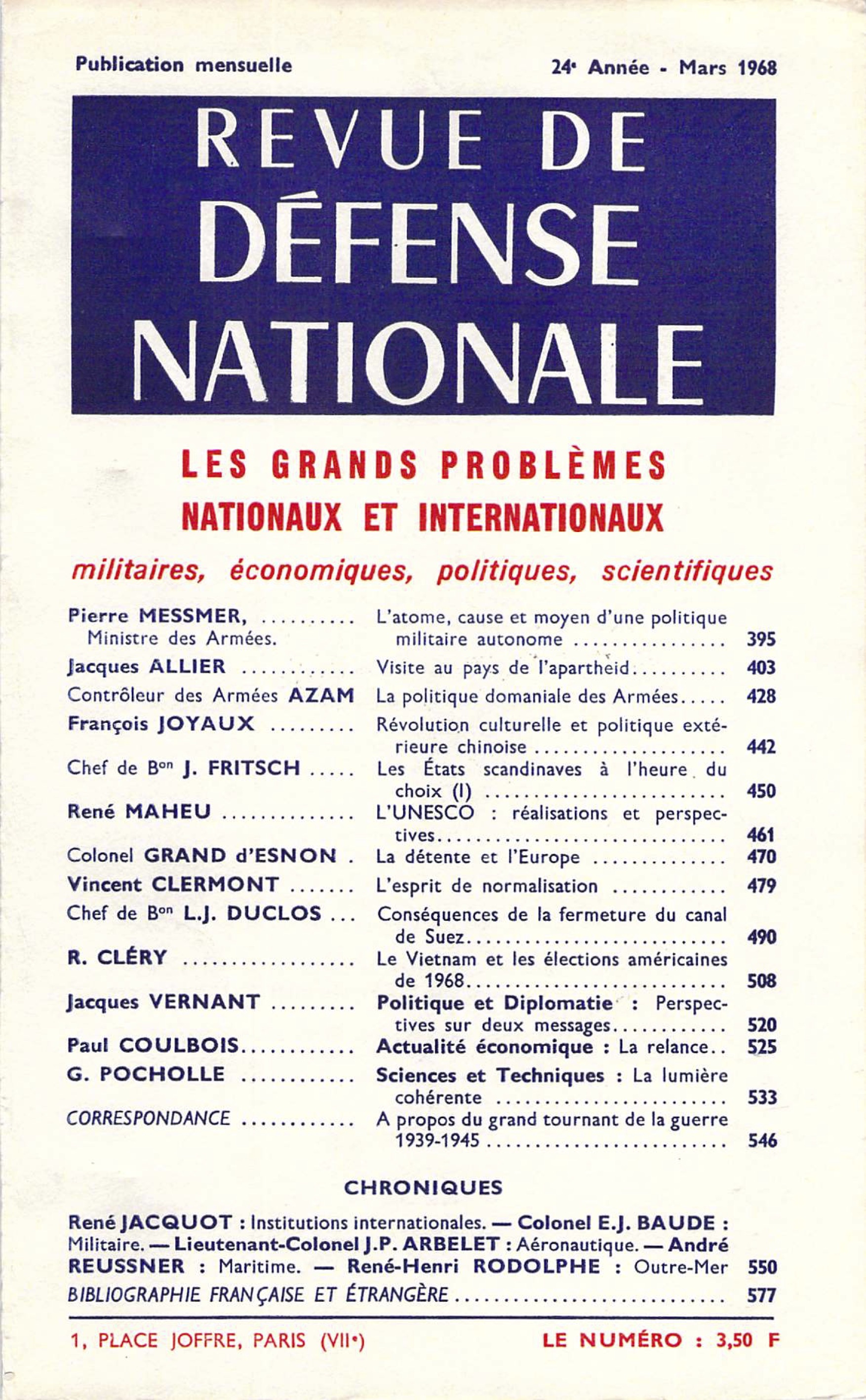 La dévaluation de la livre sterling n’a pas réglé le problème posé par la candidature de la Grande-Bretagne au Marché commun. Les Nations unies n’ont pas pu imposer une solution à la tension créée en Asie par la capture du bateau américain Pueblo par les unités nord-coréennes. Pourtant, une conférence, organisée sous l’égide des Nations unies, a permis des exposés et des confrontations d’un particulier intérêt. En d’autres termes, l’activité principale des institutions internationales s’est, au cours des dernières semaines, portée moins sur des problèmes immédiats que sur les problèmes à long terme. Lire les premières lignes