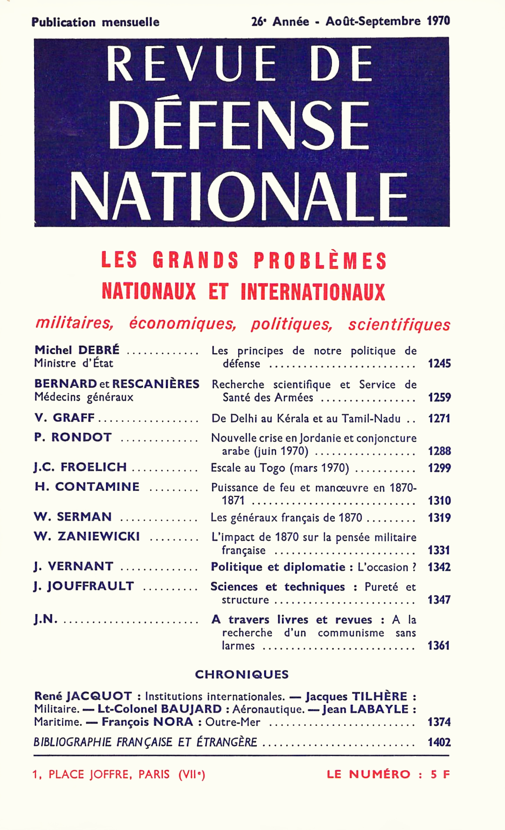 Conférence donnée à l’Institut des hautes études de défense nationale (IHEDN) le 25 juin 1970 à l’occasion de la clôture de la 22e session. Lire la suite