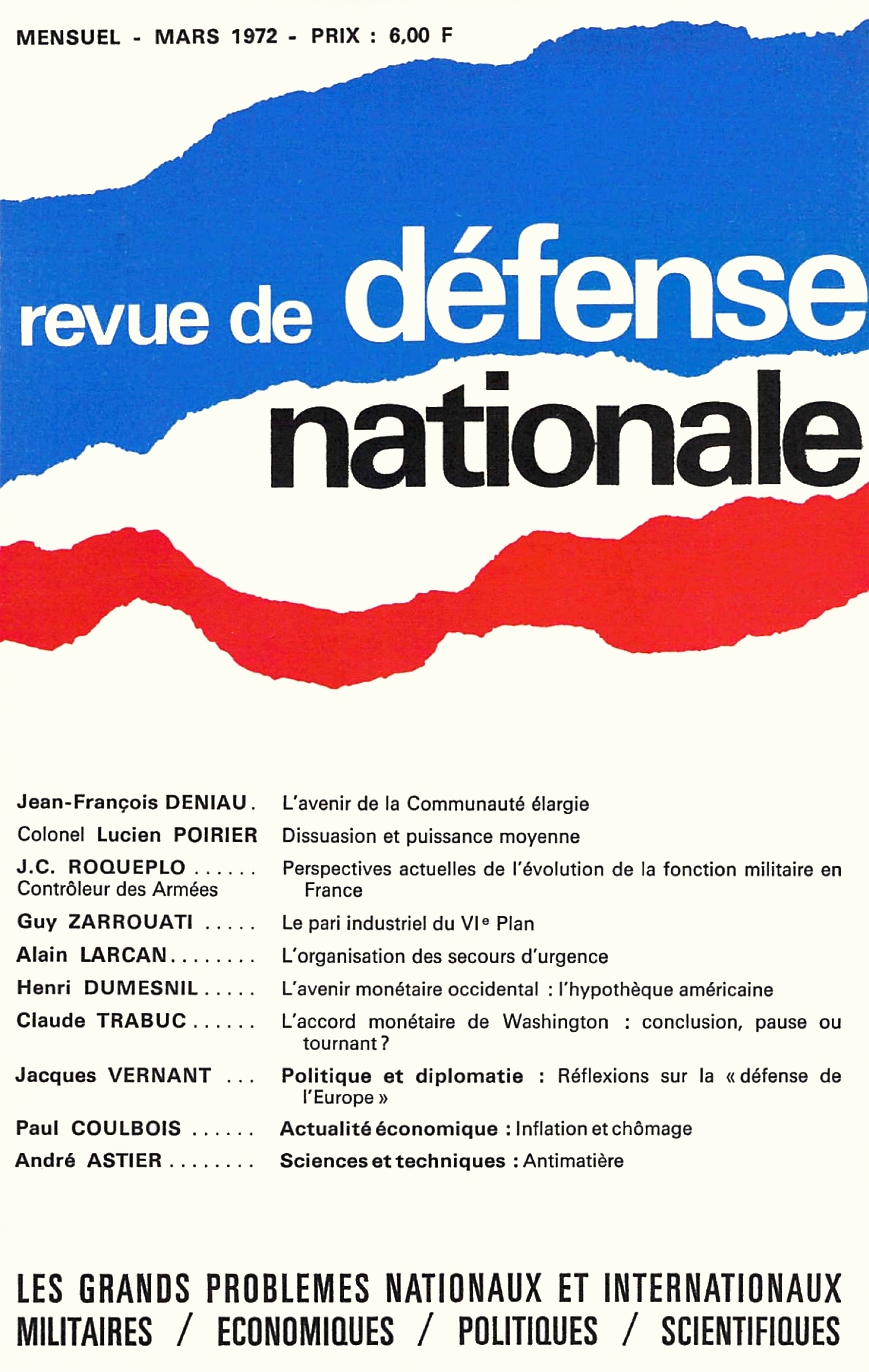 L'accord intervenu le 19 décembre entre « les Dix » à Washington n'apporte qu'une solution partielle à la crise monétaire qui a culminé en 1971. Le danger demeure d'une nouvelle crise encore plus grave. Le péril devrait conduire les pays européens à une véritable concertation pour définir à leur échelle un mécanisme qui leur rende l'indépendance monétaire, les protège contre la spéculation et leur permette de faire pression sur les États-Unis en vue de l'instauration d'un nouvel ordre monétaire international. L'auteur, inspecteur des Finances, conseiller technique au Cabinet du ministre d'État du Développement industriel et de la Recherche scientifique, est actuellement auditeur à l'Institut des hautes études de défense nationale (IHEDN).